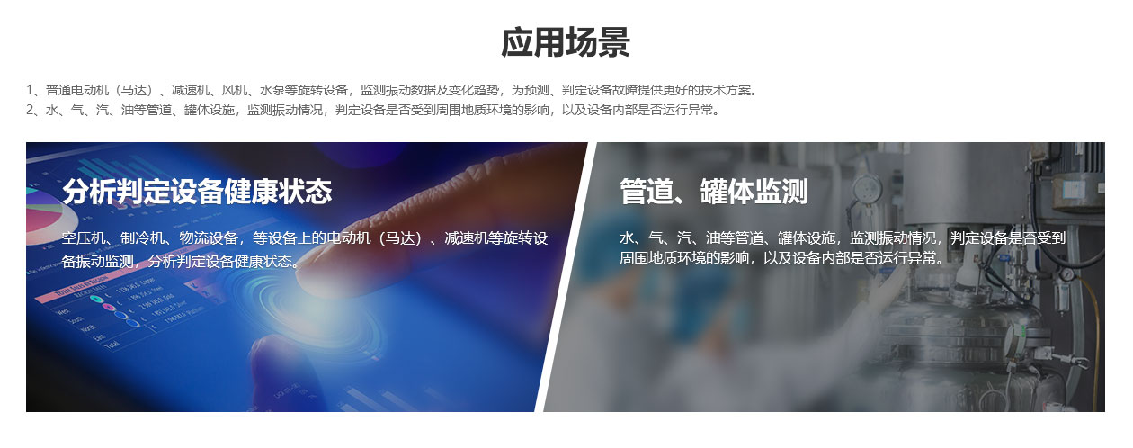 2、水、氣、燃、油等管道、罐體設(shè)施,監(jiān)測(cè)振動(dòng)情況,判定設(shè)備是否受到周圍地質(zhì)環(huán)境的影響,以及設(shè)備內(nèi)部是否運(yùn)行異常。