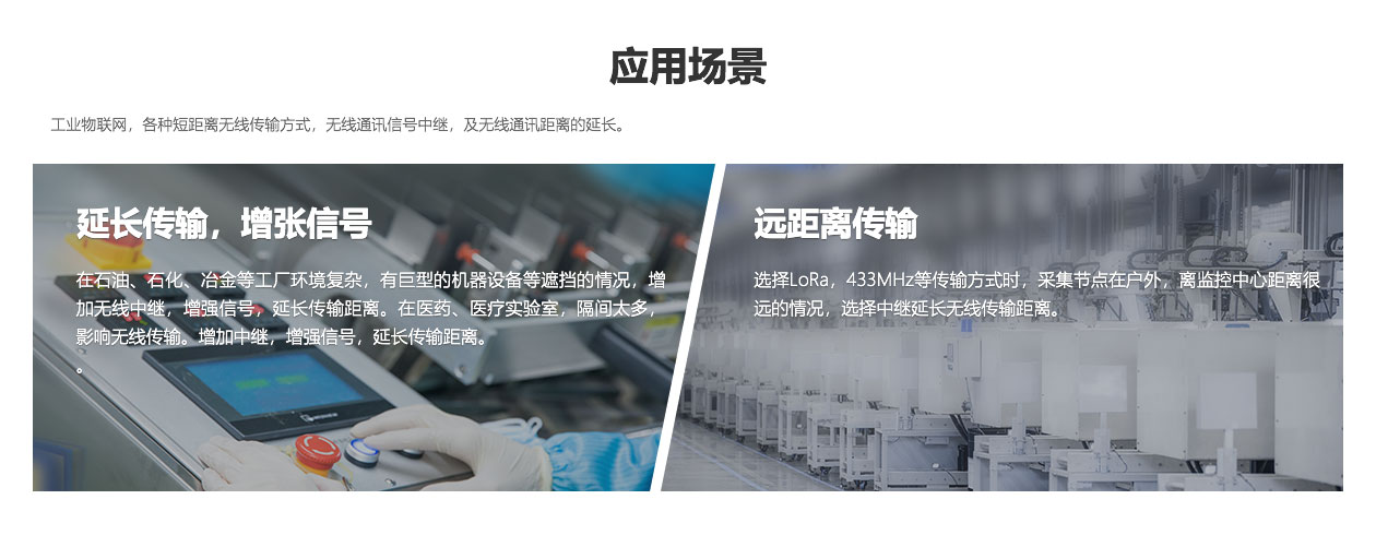 在石油、石化、冶金等工廠環(huán)境復雜,有巨型的機器設備等遮擋的情況,增加無線中繼,增強信號,延長傳輸距離。