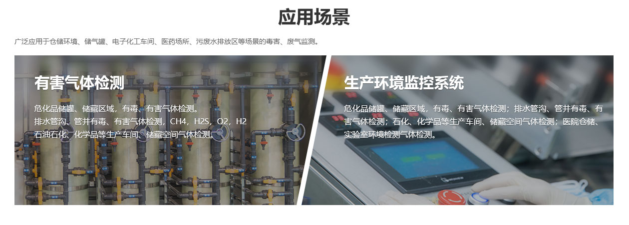電子生產(chǎn)加工車(chē)間氟化氫(HF)監(jiān)測(cè);充電間酸霧、氫氣(H2)監(jiān)測(cè);氮?dú)鈨?chǔ)罐區(qū)域氧氣(O2)監(jiān)測(cè);?;反娣艆^(qū)、倉(cāng)庫(kù)、污水處理池等場(chǎng)所有毒有害氣體監(jiān)測(cè)。
