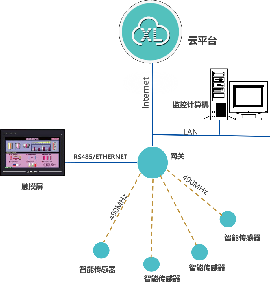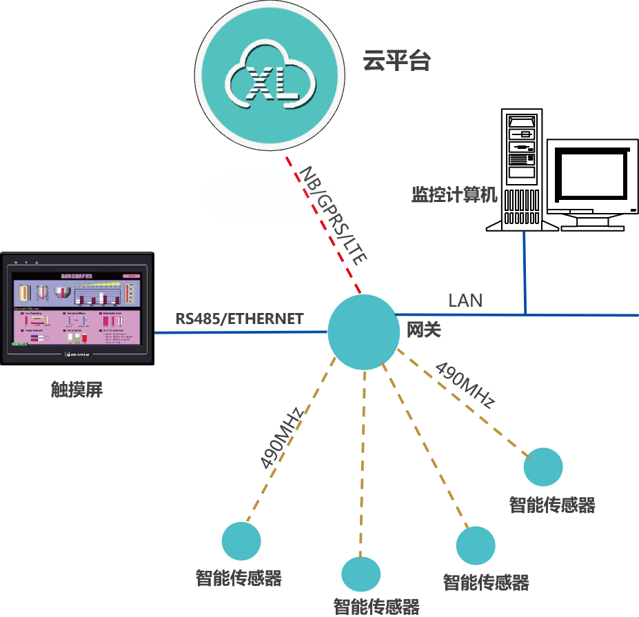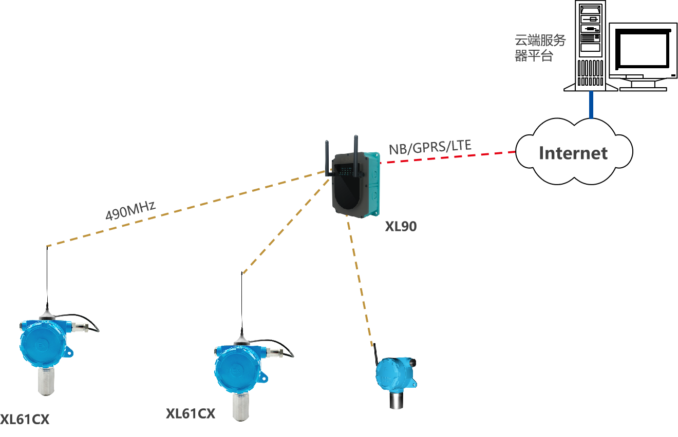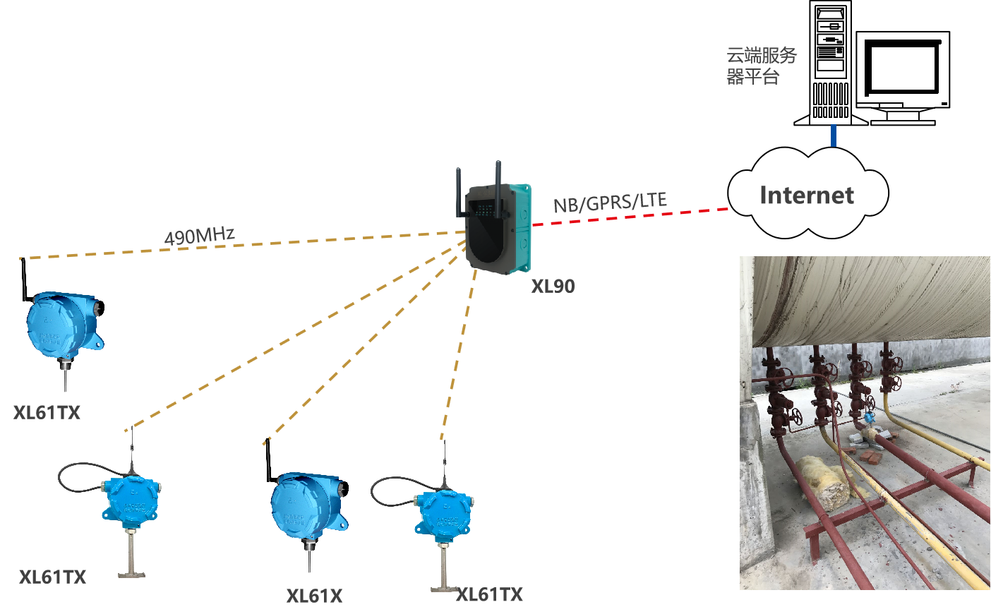 選擇XL90物聯(lián)網(wǎng)關(guān),無線讀取監(jiān)測點(diǎn)的數(shù)據(jù),進(jìn)行協(xié)議、通訊轉(zhuǎn)換后,推送至上層軟件平臺(tái)