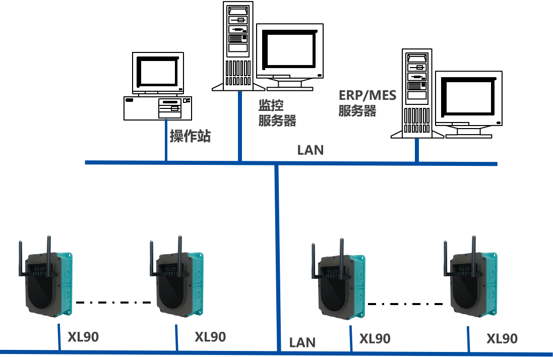 XL90,將數(shù)據(jù)上傳給企業(yè)內(nèi)部的多個(gè)系統(tǒng)軟件平臺(tái);通過LTE(4g)/NB/GPRS將數(shù)據(jù)上傳至云服務(wù)器