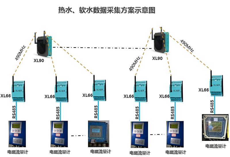 每個監(jiān)測點配置1臺XL66智能轉(zhuǎn)換器,從已安裝的電磁流量計,讀取流量數(shù)據(jù),上傳至XL90物聯(lián)網(wǎng)關(guān)