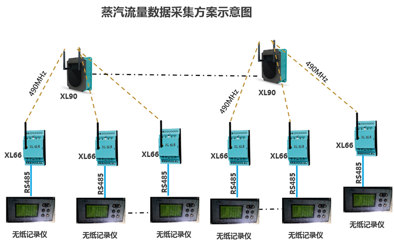 每個監(jiān)測點配置1臺XL66智能轉(zhuǎn)換器,從無線記錄儀讀取蒸汽流量數(shù)據(jù),上傳至XL90物聯(lián)網(wǎng)關(guān)