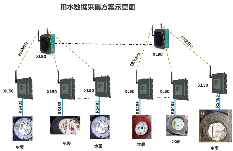 在每個用水量監(jiān)測點,配置1套XL50無線采集器