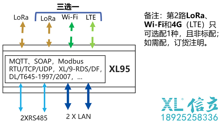 XL95標(biāo)配一路LoRa通信;可多配一路LoRa,無線讀取采集節(jié)點(diǎn)的數(shù)據(jù);