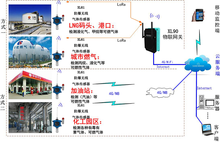 化工園區(qū)生產(chǎn)安全監(jiān)控系統(tǒng),基于無線傳感器、智能環(huán)境監(jiān)測終端、物聯(lián)網(wǎng)關、無線采集裝置、監(jiān)控服務器和XL.VIEW上位機監(jiān)控軟件等,實現(xiàn)對園區(qū)生產(chǎn)環(huán)境的各項要素(如有毒有害氣體、易燃易爆氣體、風向風速、氣壓、雨量、溫濕度、粉塵、煙感等)進行實時采集、無線傳輸、監(jiān)測與預警。