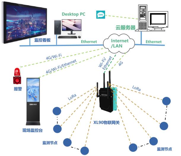 LoRa無(wú)線上傳溫度數(shù)據(jù),須選XL9X系列物聯(lián)網(wǎng)關(guān)作無(wú)線接收端,通過(guò)Ethernet、Wi-Fi、RS485,或4G通信方式,接入溫度監(jiān)控軟件平臺(tái),支持Modbus RTU/TCP、MQTT、SOAP、寫(xiě)數(shù)據(jù)庫(kù)等通信協(xié)議。 |