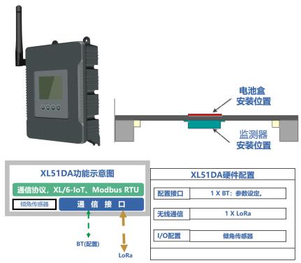 井蓋移動(dòng)監(jiān)測(cè):選擇低功耗無(wú)線傾角傳感器XL51DA實(shí)現(xiàn)。
