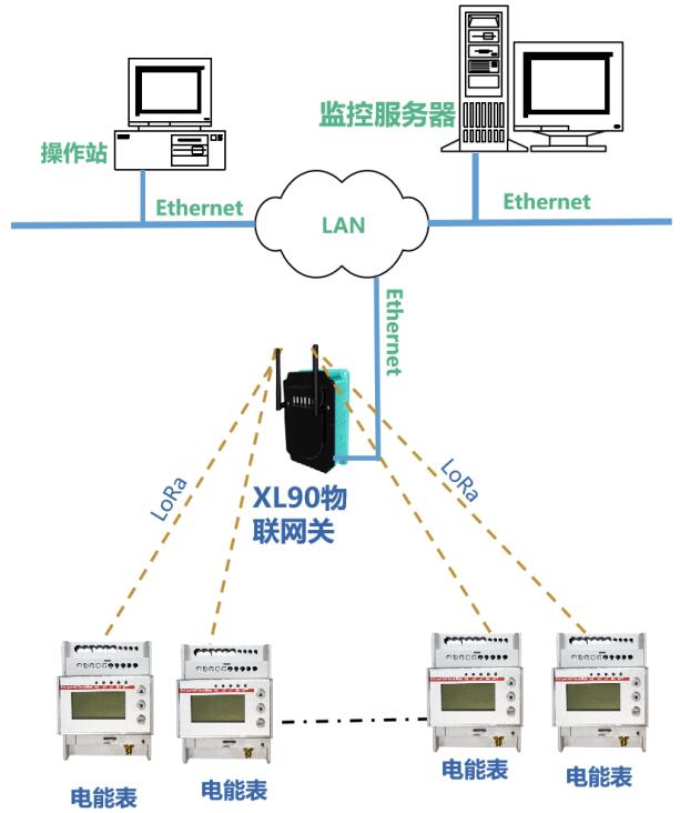 l 選擇DTSD3366XX/XL系列無(wú)線電能表,配置LoRa通信,分布在車(chē)間、工廠各點(diǎn)的用電數(shù)據(jù),無(wú)線匯聚到網(wǎng)關(guān),接入監(jiān)控服務(wù)器,降低施工費(fèi)用,減少了更多的麻煩。