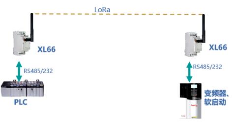 將一對(duì)XL66分別與兩臺(tái)有RS485/232通信口的設(shè)備連接,實(shí)現(xiàn)這兩臺(tái)串口設(shè)備的無(wú)線(xiàn)連接、通信。