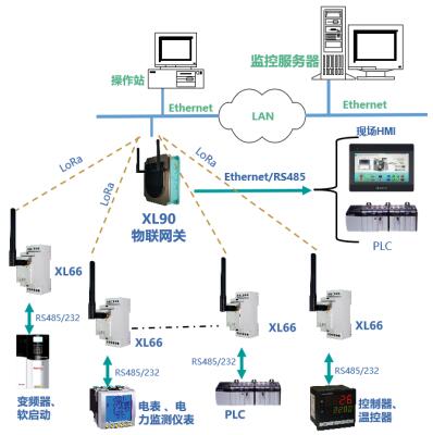工廠(chǎng)、車(chē)間、園區(qū)等場(chǎng)所,有RS485或232通信接口的控制器、二次儀表、變送器等,可通過(guò)XL66實(shí)現(xiàn)無(wú)線(xiàn)聯(lián)網(wǎng)。