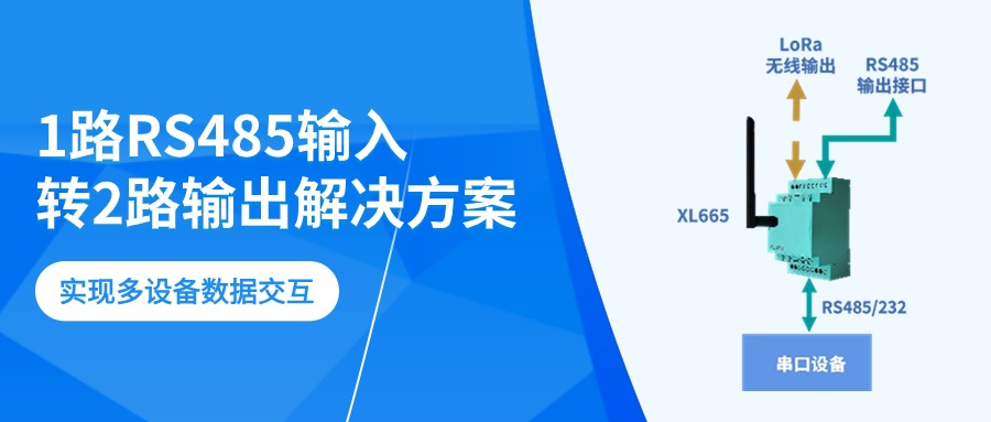一路RS485信號,經由XL665無線轉換器,輸出一路RS485信號和一路LoRa無線信號,同時接入兩個不同的設備(系統(tǒng))。