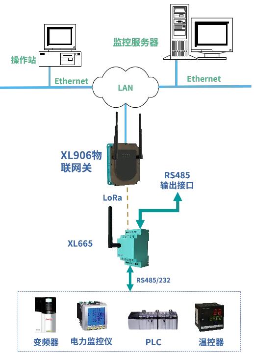 2、經由XL665無線轉換器輸出的LoRa信號,可上傳至物聯(lián)網關,接入監(jiān)控軟件平臺;