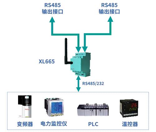 1、經由XL665無線轉換器輸出的RS485信號,可接入任何支持RS485及儀表通信協(xié)議的設備;