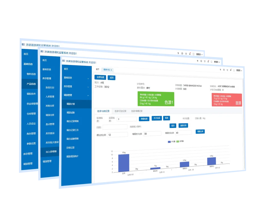 平臺(tái)自動(dòng)記錄、生成用戶所需的各類報(bào)表,如調(diào)漆成品統(tǒng)計(jì)、庫(kù)存余料盤點(diǎn)等報(bào)表;