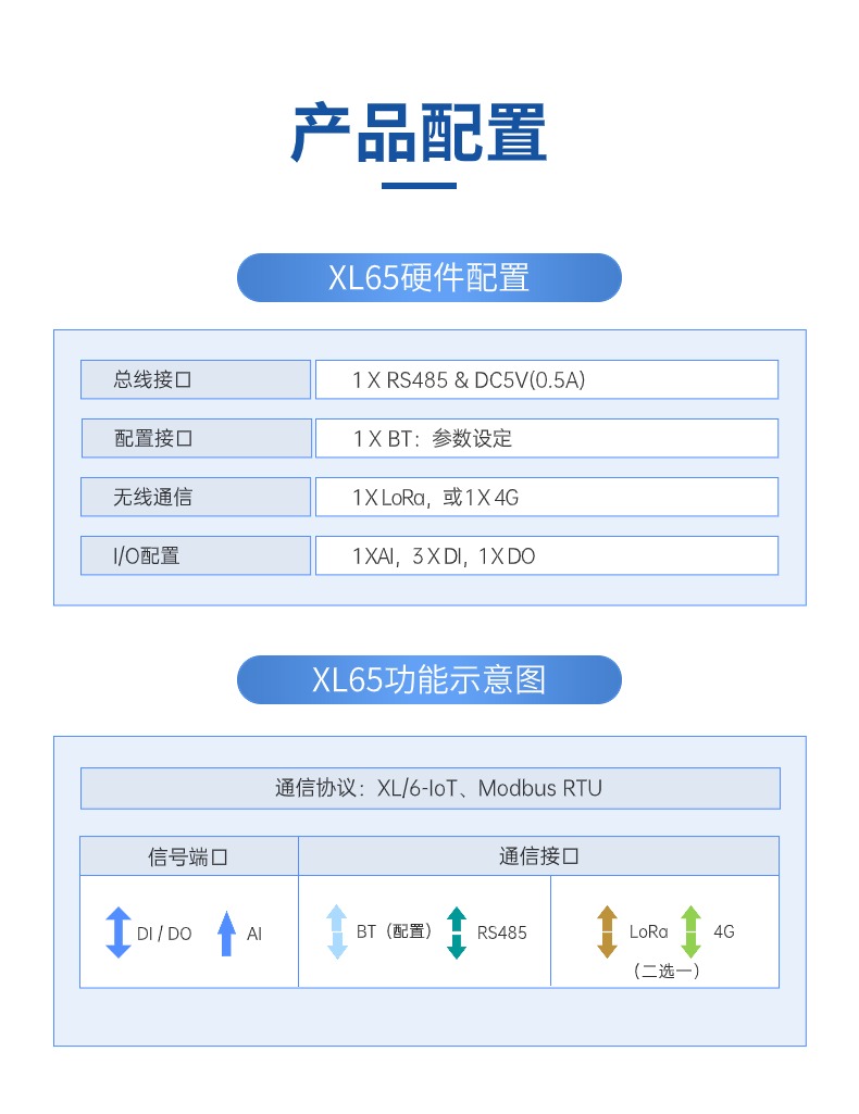 XL65 無線低功耗模塊支持LoRa、4G無線通信方式,可根據(jù)實際應(yīng)用場景和需求,選擇合適的無線通信方式,將采集到的信號和數(shù)據(jù)上傳至監(jiān)控中心。